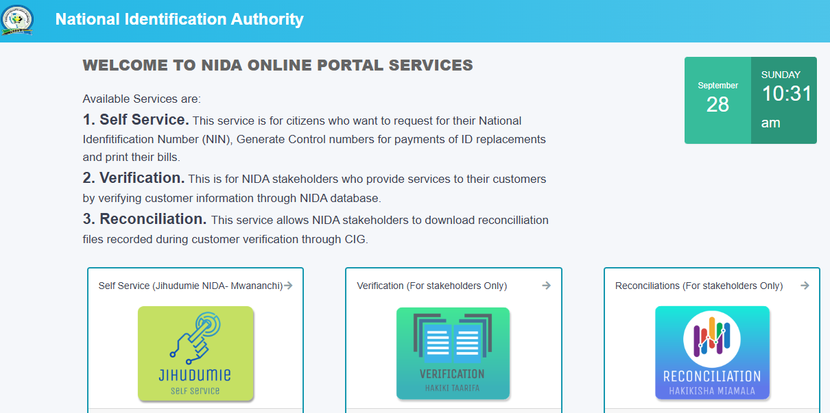 Fungua tovuti rasmi ya NIDA kupitia: https://services.nida.go.tz.