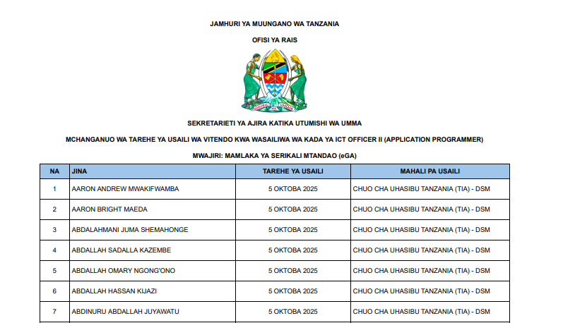 MCHANGANUO Wa Tarehe Za Usaili Wa Vitendo Kada Ya Dereva Daraja La II Na Ict Officer Ii (Application Programmer)